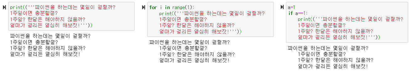 구문에서 여러 줄의 문자열을 사용할 때 들여쓰기를 할 경우, 두번째 줄부터 들여쓰기 된 채 출력