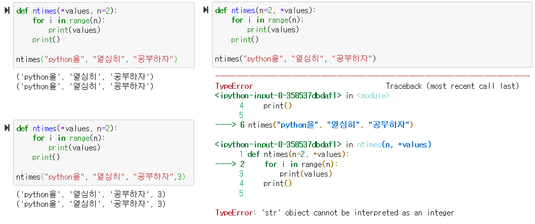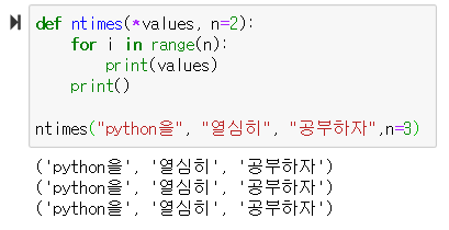 def 함수명(매개변수1, 매개변수2, ... , *가변 매개변수):