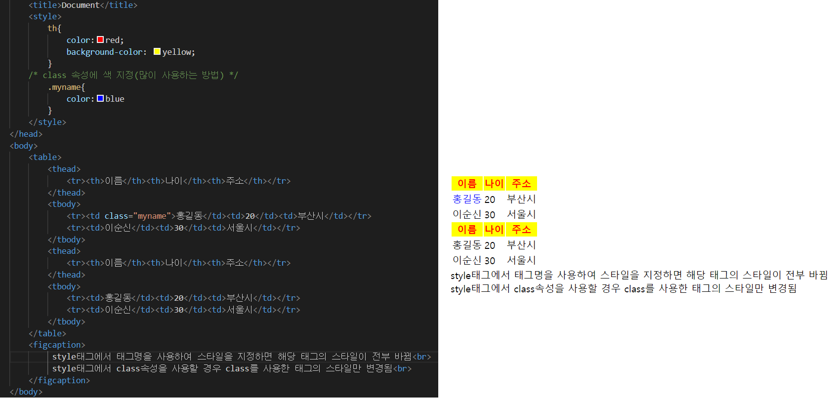 ② <style>태그를 사용하여 적용