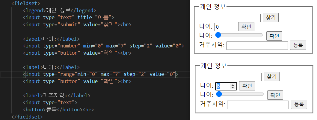 | range | 숫자를 조절할 수 있는 슬라이드 막대를 삽입 |