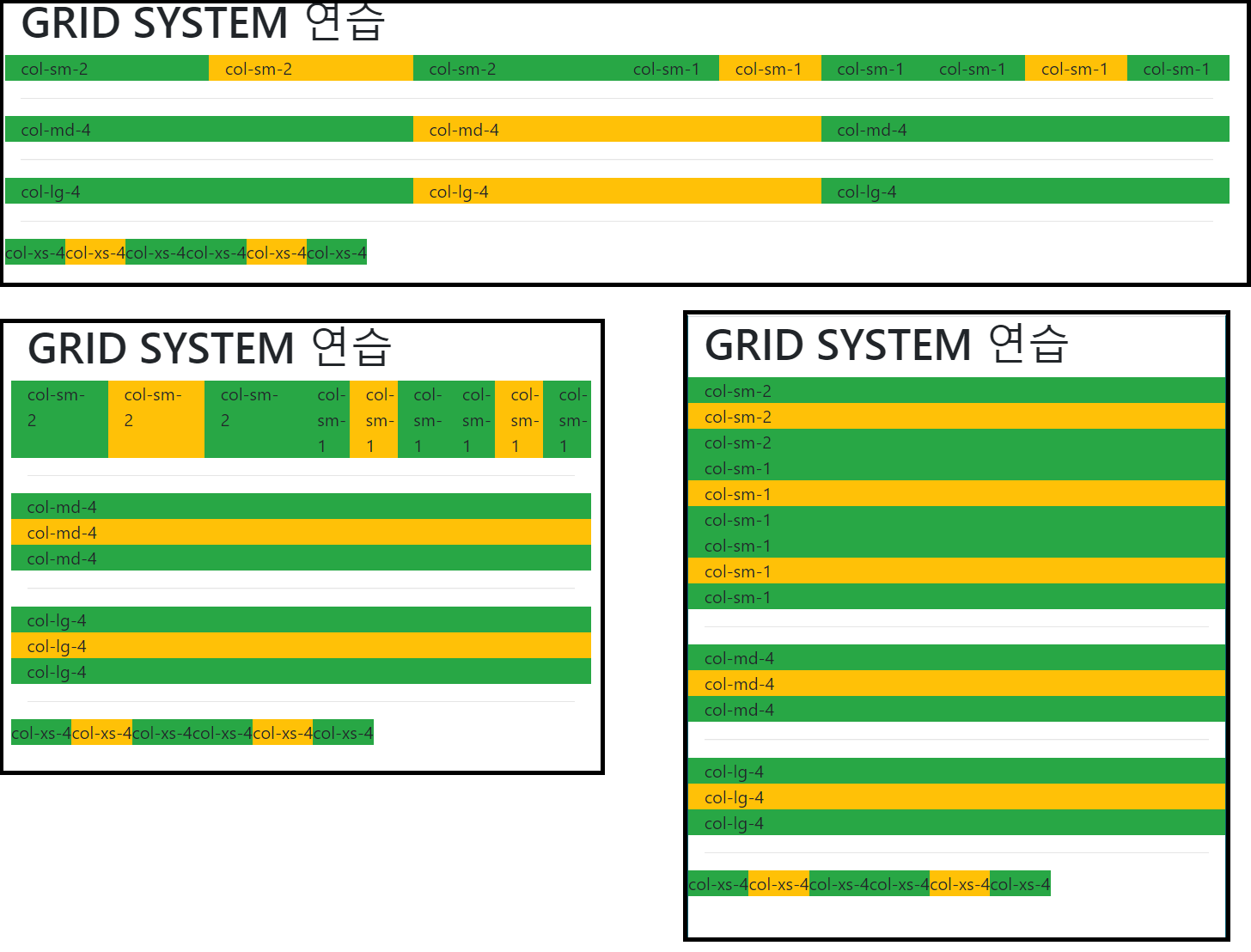 | col-sm-숫자 | 768px이하에서 세로로 나타나도록 설정 |