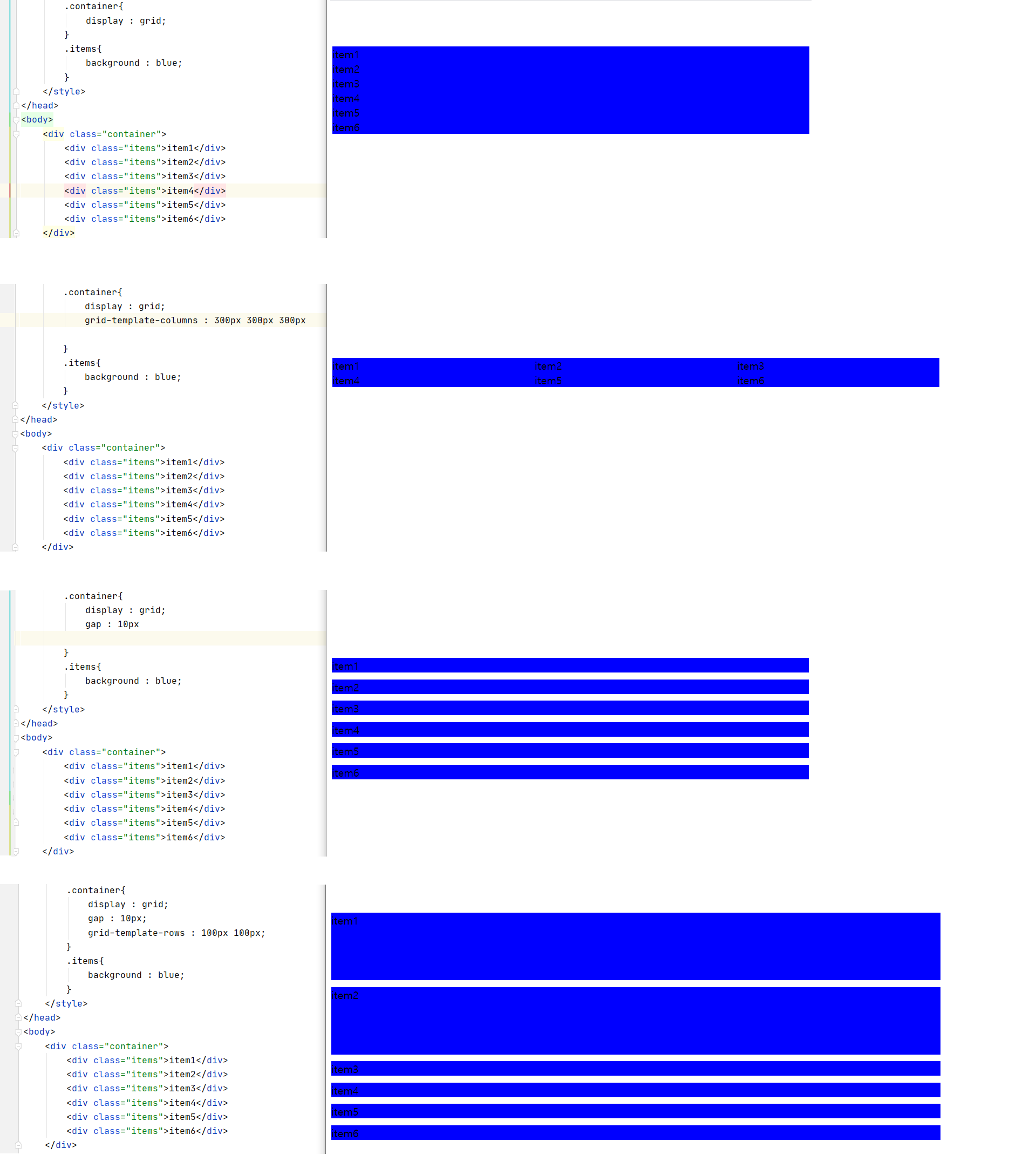 | gap | grid item들 사이에 여백을 설정하는 속성 |