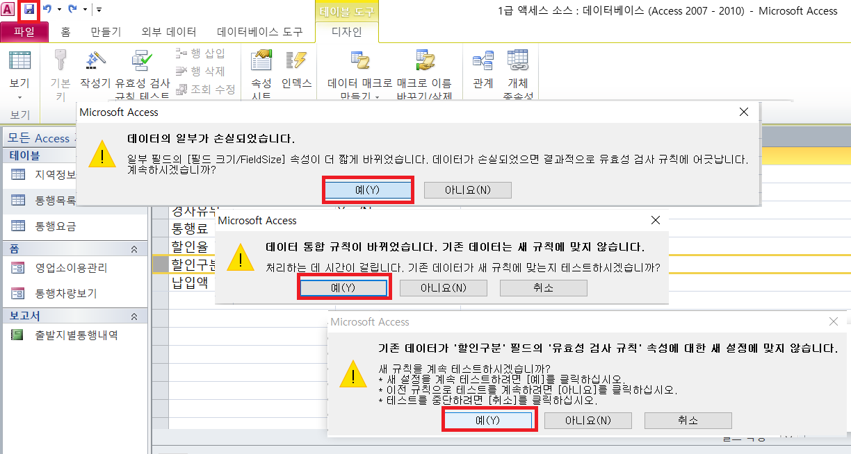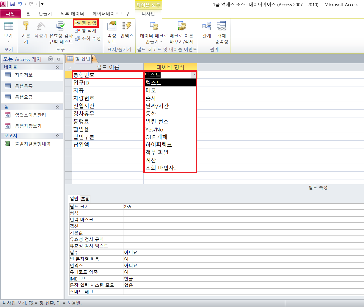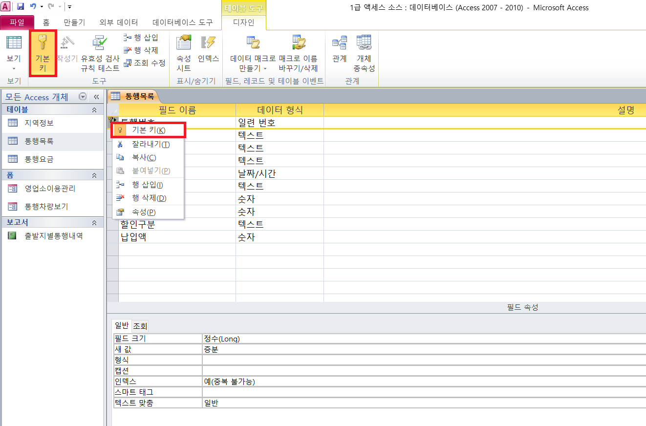 | 인덱스 | - 더블클릭하면 예/아니오 변경 가능 예(중복가능) : 색인(중복가능) 예(중복불가능) : 색인(중복불가능) 아니오 : 색인 없음 - 인덱스의 고유 설정 ![]() |