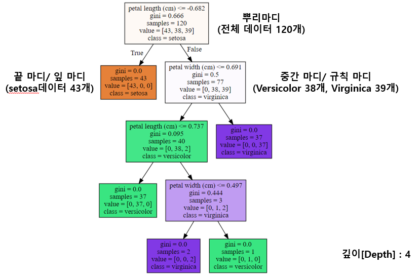 ex> max depth=3인 경우, depth가 3일 때까지만 split한다는 의미!
