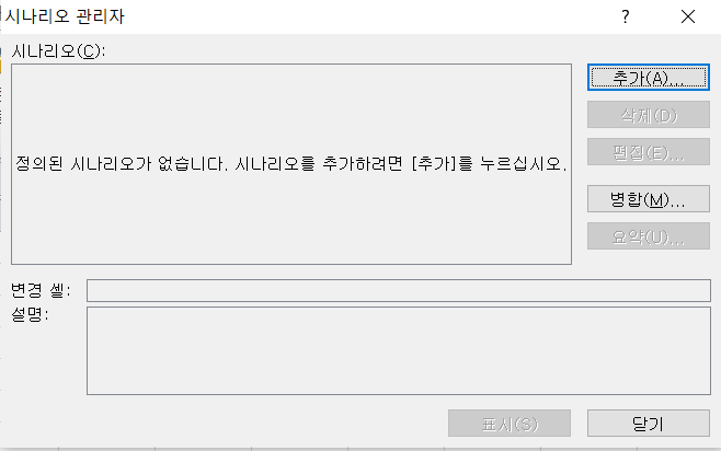 | 표시 | 선택한 시나리오 값을 워크시트에 표시 |
