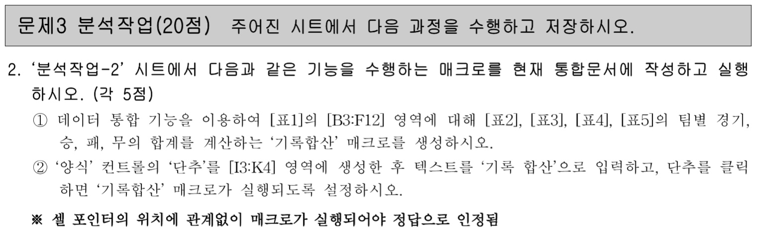 자동필터 기능을 사용하는 문제의 경우 기록 중지 후 반드시 자동 필터 해지를 선택해야됨!!