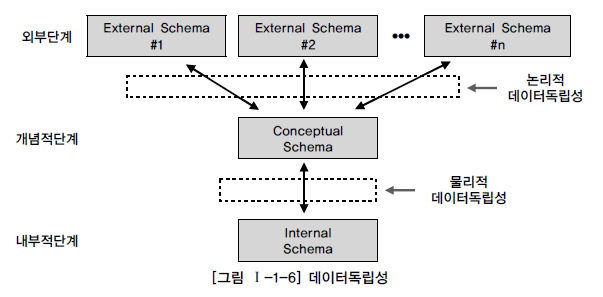 ANSI/SPARC의 3단계 구성의 데이터독립성 모델은 외부단계와 개념적 단계, 내부적 단계로 구성된 서로 간섭되지 않는 모델을 제시