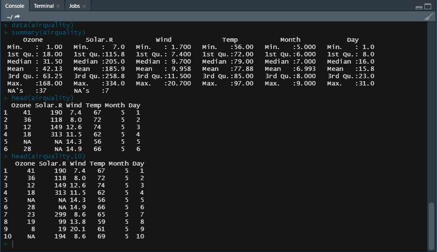 ex> airquality data