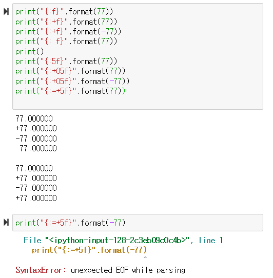 | %d, %x, %o | 정수(10진수, 16진수, 8진수) |
