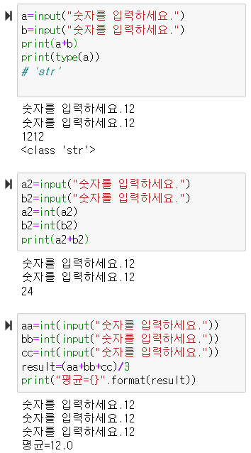 | int( )함수 | 문자열을 int 자료형으로 변환 int는 정수를 의미 |
